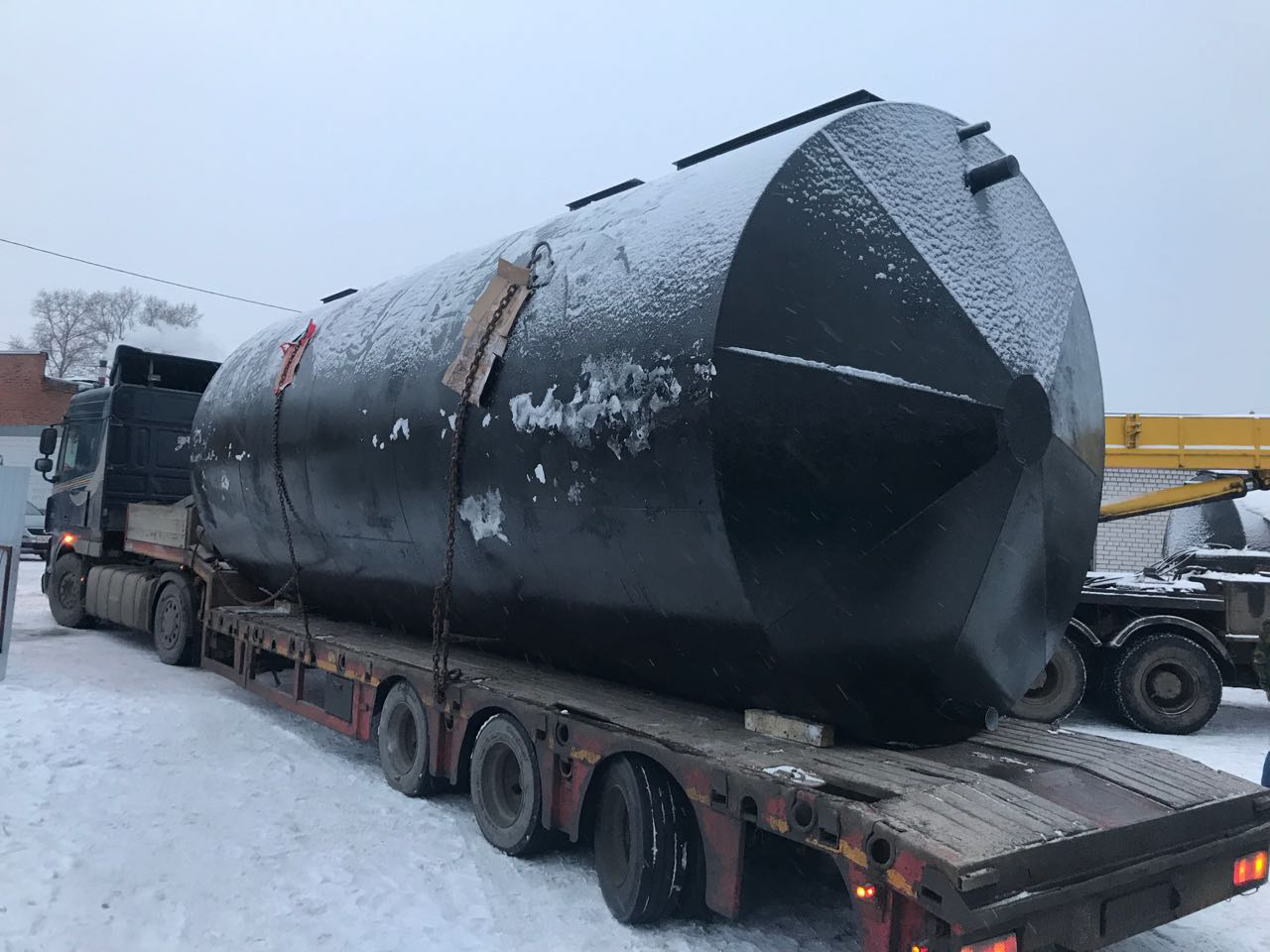 Габариты очистного сооружения: длина 8400 / диаметр 2400 / вес 4800 кг.